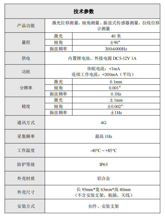 于高支模、桥梁、隧道安全监测。采用内置可充电锂电池供电,可外